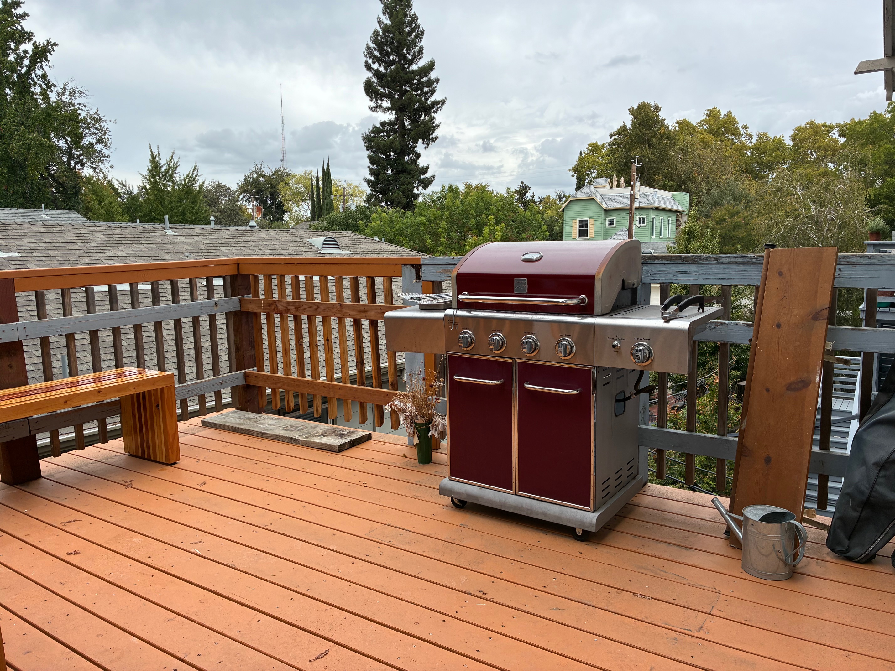 In addition to the Standard Features on the home page, this unit has wainscoting in the kitchen, a filter with water, an ice dispenser in the refrigerator, and a patio area with firepit and large umbrella steps from the back door.